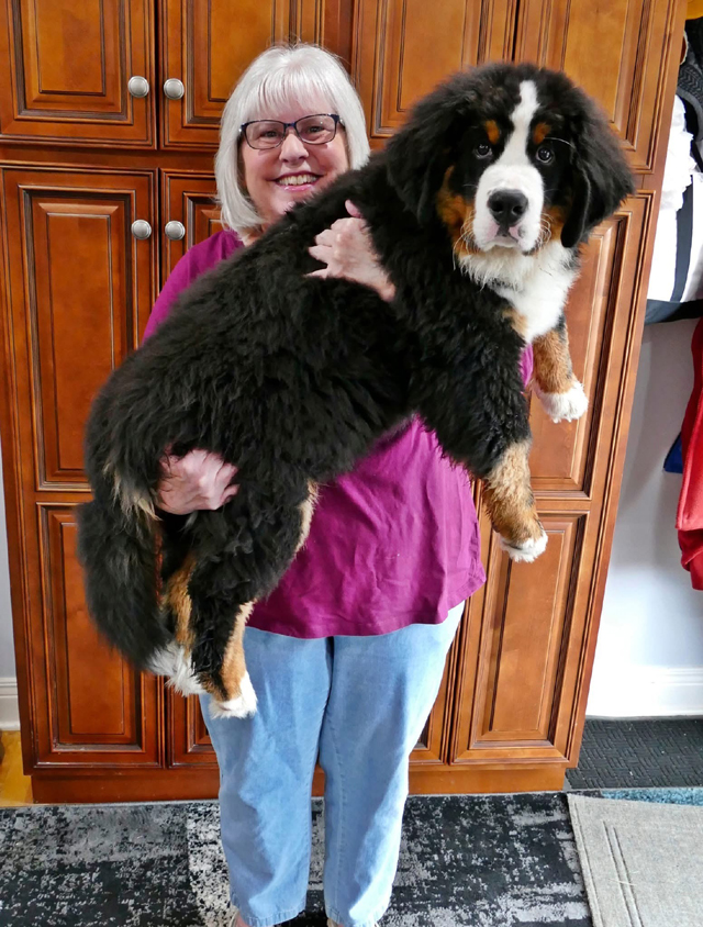 He's a handful! Bruce and Linda Whiteside and Grizz had a job showing off what 16 weeks of Berner puppy looks like! Grizz's B-G Dog ID Grizz's B-G Pedigree 12/04/25 |