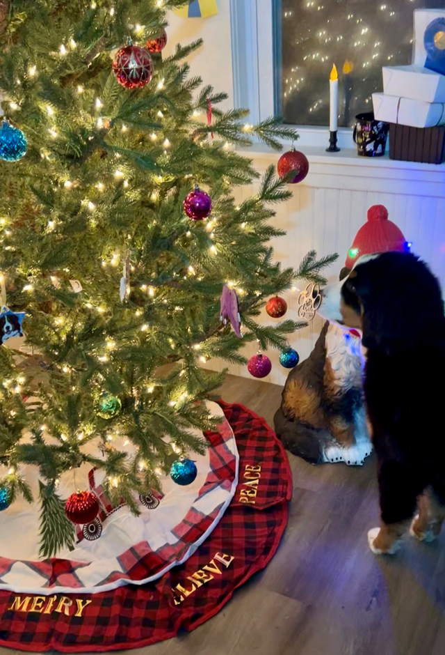 Someone is either excited or just curious! Allison Harding's Vana is taking a special interest in one of the ornaments! Vana's B-G Dog ID Vana's B-G Pedigree 12/08/25 |