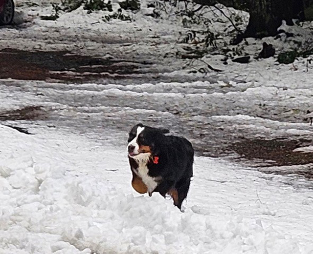 It's what Berners do! Diane VanPelt's Fergus is already having the best time going deaf in the snow! Fergus' B-G Dog ID Fergus' B-G Pedigree 01/10/26 |