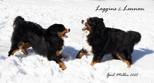 There's at least one thing better than a Berner in snow! Gail Miller's Loggins and Lennon have a grand time playing a game of bite face in the snow! Loggins' B-G Dog ID Loggins' B-G Pedigree Lennon's B-G Dog ID Lennon's B-G Pedigree 01/18/26 |