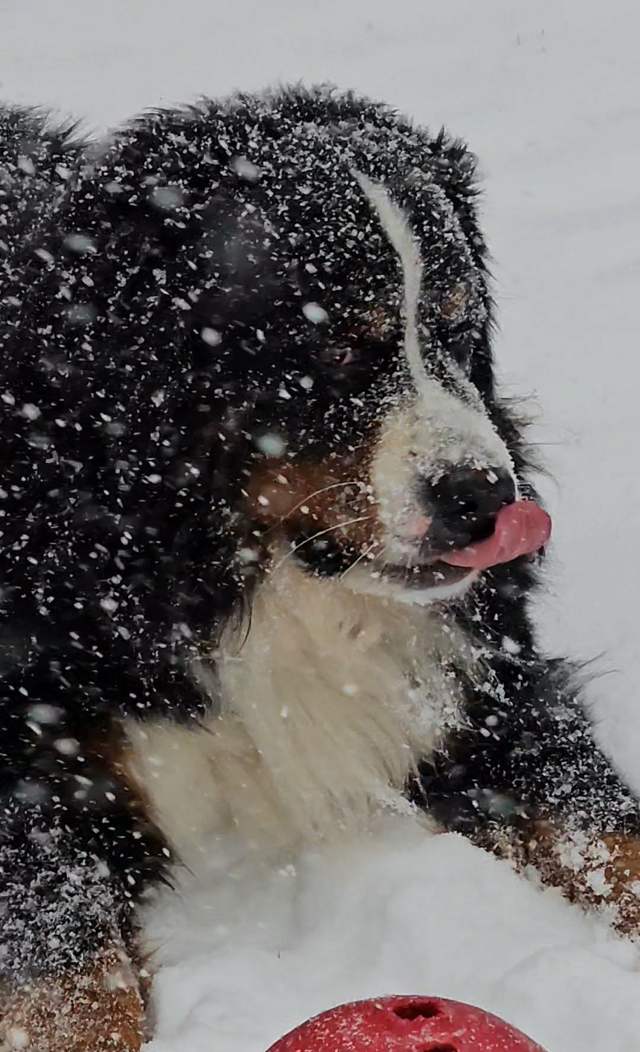 An important addition! Sue Houser's Cody knows that it's not just the snow that's important, but having the right toy to enjoy with it! Cody's B-G Dog ID Cody's B-G Pedigree 02/07/26 |