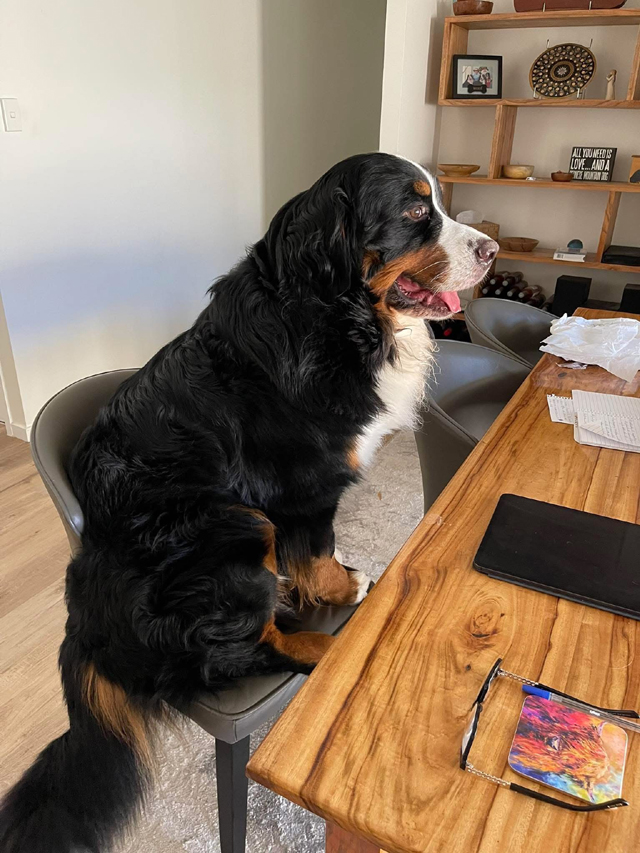 A diligently working dog! Sue Beagley's Bessie knows what work is most important, and likes to ensure she does is thoroughly! Bessie's B-G Dog ID Bessie's B-G Dog ID 03/15/26 |