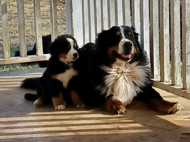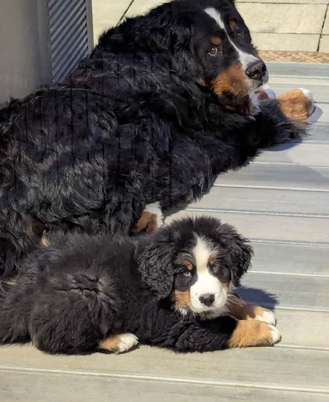 Hudson & River welcome you to the Berner-L Picture of the Day! Our photo is cuter than any of the others! Hudson's B-G Dog ID |