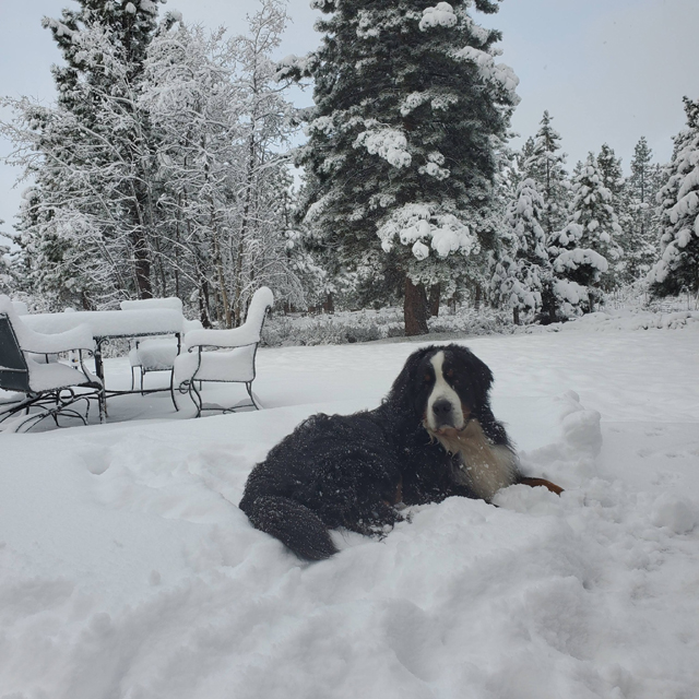 It ain't over yet! Jennifer Zaayer's Gable certainly enjoyed this late winter or early spring snowfall - Berner weather! Gable's B-G Dog ID Gable's B-G Pedigree 04/16/26 |