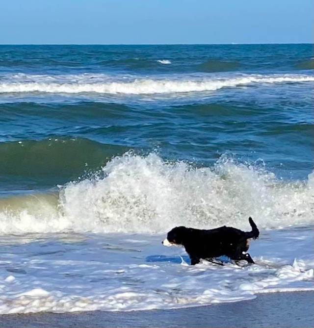 On the other hand...! Sue Beagley's Bessie is enjoying the Virginia Beaches on a cool Spring day - life is grand! Bessie's B-G Dog ID Bessie's B-G Pedigree 04/17/26 |