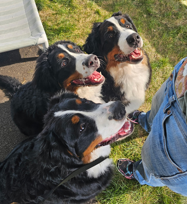 Some Berners are natural posers! Erica Hartt's Capone sits elegantly while Peaky and Rock lie down in front of him ever so stately! Capone's B-G Dog ID Capone's B-G Pedigree Peaky's B-G Dog ID Peaky's B-G Pedigree Rock's B-G Dog ID Rock's B-G Pedigree 04/13/26 |