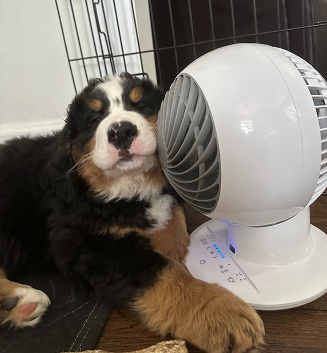A member of the Berner Fan Club! Jennifer Carmenate-Dale and Elizabeth Fletcher's boy Benny just LOVES his fan, and he isn't interested in sharing! Benny's B-G Dog ID Benny's B-G Pedigree 08/06/25 |