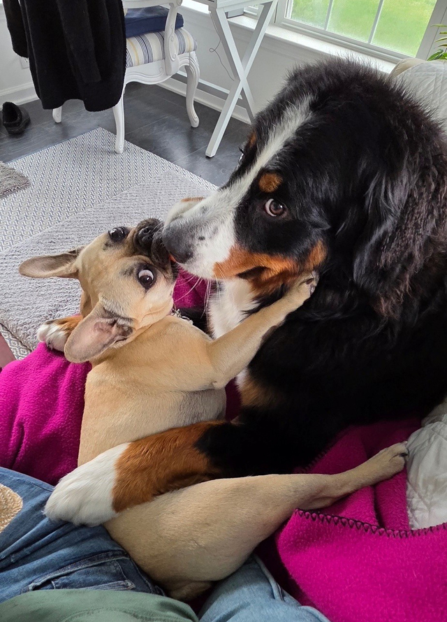 Speaking of best buddies! Andrea Chin's rescue boy Banjo just adores Lisa Baldwin's Dylan, as anyone would! Banjo's B-G Dog ID Dylan's B-G Dog ID Dylan's B-G Pedigree 08/13/25 |