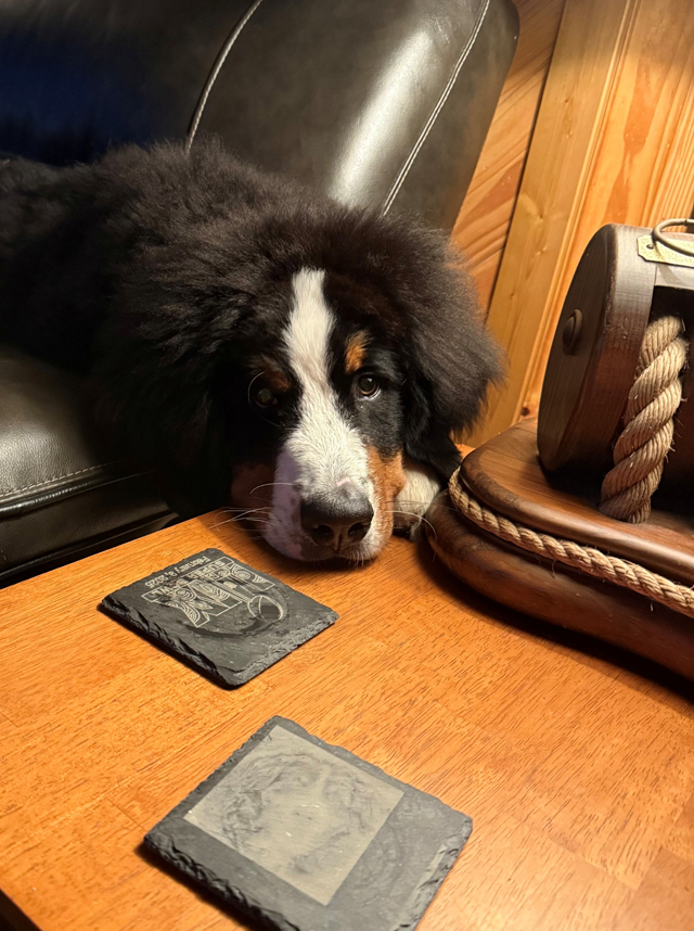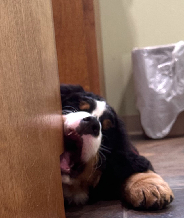 Who needs perfect woodwork! Jennifer Carmenate-Dale and Elizabeth Fletcher's boy Benny is hard at work to round out those sharp corners! Benny's B-G Dog ID Benny's B-G Pedigree 08/17/25 |