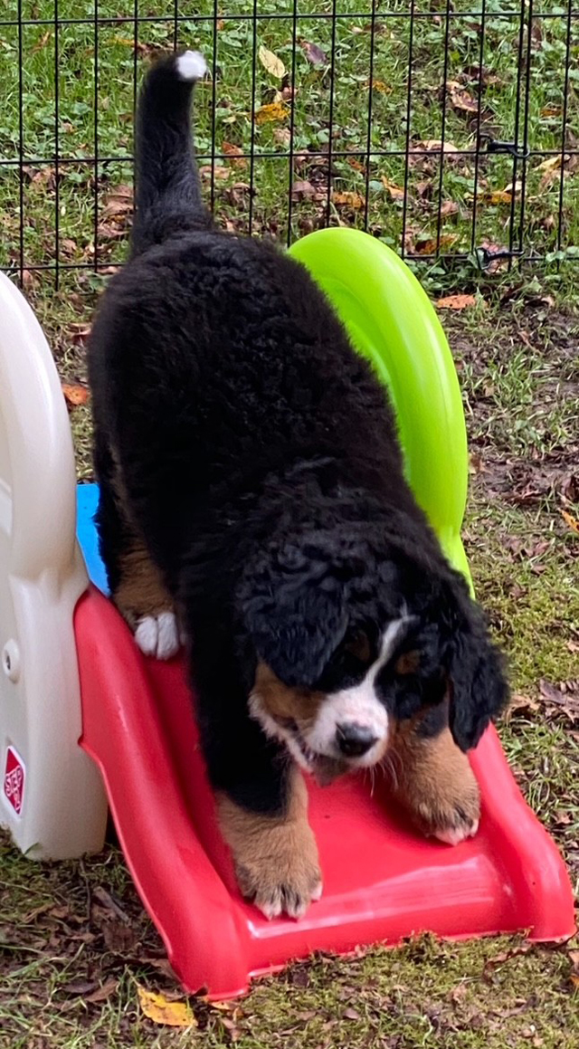 And it's a big slide! Cole Shanholtz's Maple was just a tiny thing here, but she sure knew how to enjoy the slide! Maple's B-G Dog ID Maple's B-G Pedigree 08/18/25 |