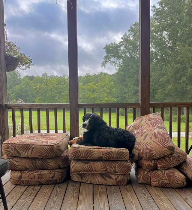 Comfort is important! Dorene and John McCune's Cassie took advantage, and picked the perfect spot, but does the Princess feel any peas?! Cassie's B-G Dog ID Cassie's B-G Pedigree 08/27/25 |