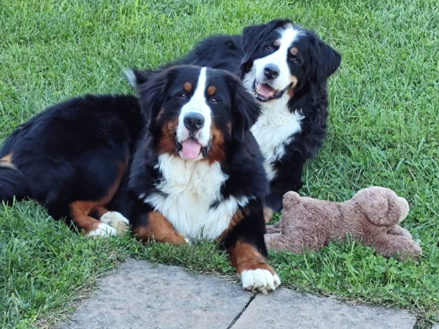 Hudson & River welcome you to the Berner-L Picture of the Day! Our photo is cuter than any of the others! Hudson's B-G Dog ID |