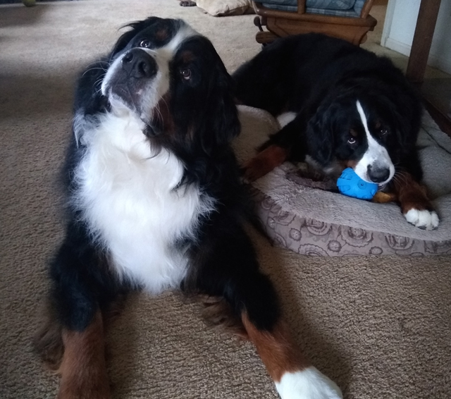 Hudson & River welcome you to the Berner-L Picture of the Day! Our photo is cuter than any of the others! Hudson's B-G Dog ID |