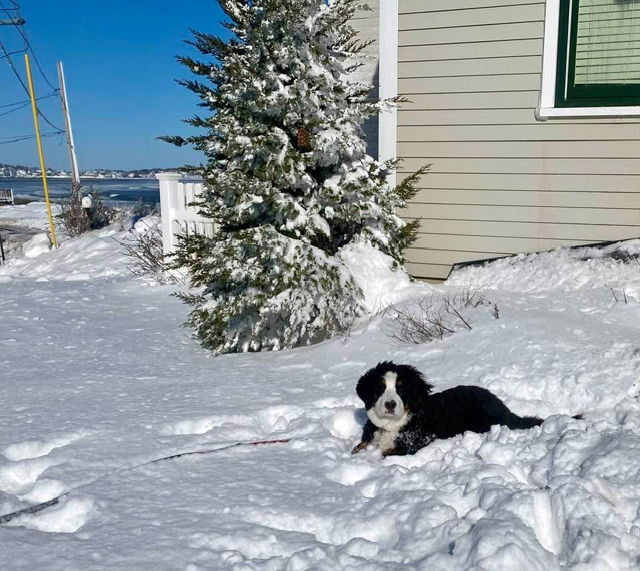 Snow at the shore! Sue Beagley's Bessie is enjoying the snow for now, but she'll have even more fun in the surf when it gets warmer! Bessie's B-G Dog ID Bessie's B-G Pedigree 03/04/26 |