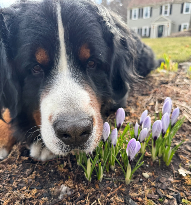 Hope springs eternal! Tricia Sullivan's Prancer is jealously guarding the bit of color that his crocuses brought! Prancer's B-G Dog ID Prancer's B-G Pedigree 03/09/26 |