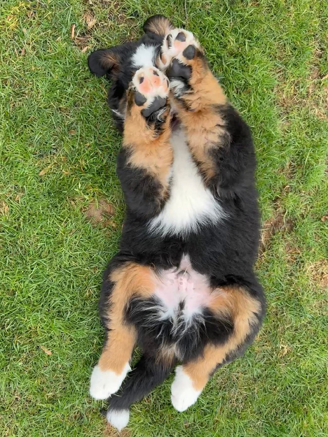 Caution - extreme cuteness! Toby Erlichman's Bruce is either playing peek-a-boo, or just showing off his monster paws! Bruce's B-G Dog ID Bruce's B-G Pedigree 03/24/26 |