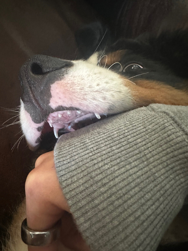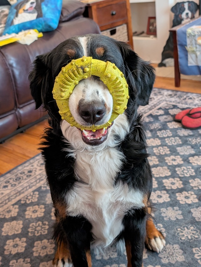 A perfect example! KC Harrison's Willow sure knows how to twist into a Berner pretzel, do they even have skeletons?! Willow's B-G Dog ID 10/07/25 |