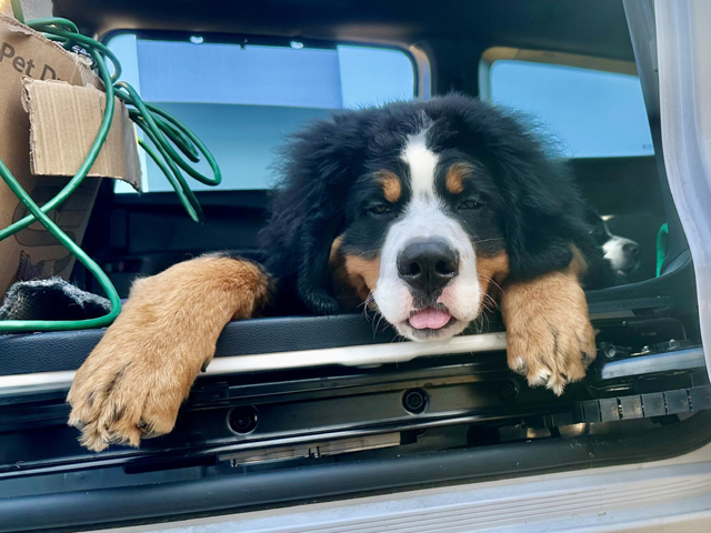 Exhausted boy! Jennifer Carmenate-Dale and Elizabeth Fletcher's Benny looks like he loaded the entire car all by himself! Benny's B-G Dog ID Benny's B-G Pedigree 11/17/25 |