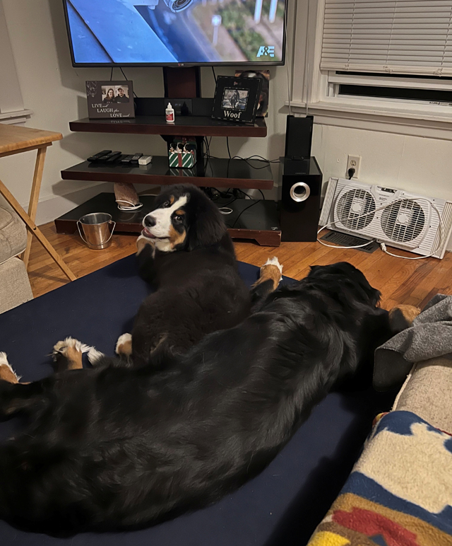 Practicing telekenesis! KC Harrison's Boone and Willow think any pancakes should float off the table and right into their mouths! Boone's B-G Dog ID Willow's B-G Dog ID 11/14/25 |